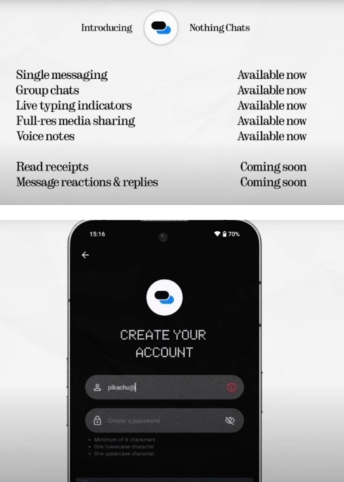 Nothing 首席執行官 Carl Pei 聲稱(chēng),該應用程序將支持單聊、群聊、影音文件共享、語(yǔ)音、即時(shí)顯示用戶(hù)輸入情況等功能,未來(lái)還將添加“消息反應”和“回復”等功能。