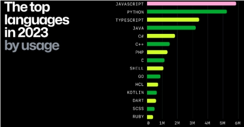 用于數據分析和操作的流行語(yǔ)言和框架明顯增加。T-SQL 和 TeX 等古老的語(yǔ)言在 2023 年均有所增長(cháng),凸顯了數據科學(xué)家、數學(xué)家和分析師越來(lái)越多地使用開(kāi)源平臺和工具。“編程語(yǔ)言不再僅僅局限于傳統軟件開(kāi)發(fā)領(lǐng)域”。