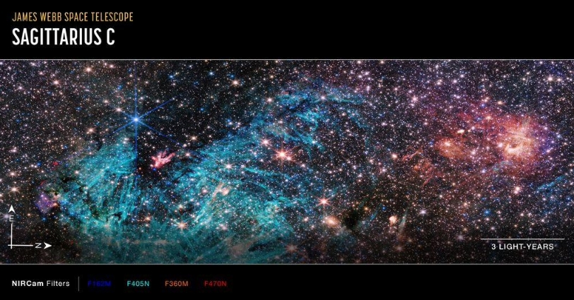 這張最新的照片,向我們展示了銀河系中心人馬座 C(Sagittarius C)區域,距離銀河系的超大質(zhì)量黑洞人馬座 A * 大約 300 光年。