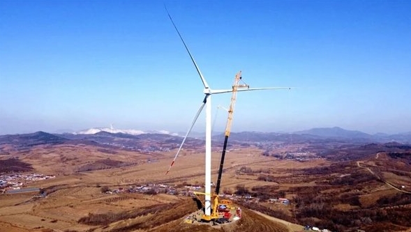 在中國能建東電二公司大石橋鑫泰200MW風(fēng)電項目現場(chǎng),徐工XCA3000成功將重25噸、長(cháng)95米的風(fēng)機葉片輕輕拉上107米的高空,精準對接風(fēng)機輪轂,安裝到位。