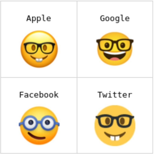 書(shū)呆子臉是 Unicode 8 引入的一個(gè) Emoji,配有巨大的眼鏡、尷尬的笑容,在蘋(píng)果系統中還會(huì )露出兩顆大門(mén)牙。