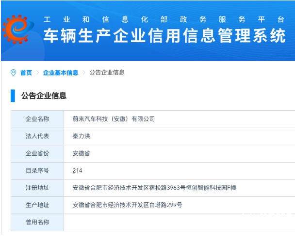 PChome在工信部“車(chē)輛生產(chǎn)企業(yè)信用信息管理系統”已經(jīng)查到了“蔚來(lái)汽車(chē)科技(安徽)有限公司”,生產(chǎn)地址為安徽省合肥市經(jīng)濟技術(shù)開(kāi)發(fā)區白塔路299號,法人代表為秦力洪。公開(kāi)資料顯示,秦力洪是蔚來(lái)汽車(chē)聯(lián)合創(chuàng )始人、總裁。此前,秦力洪曾任蔚來(lái)手機公司法人代表。由此來(lái)看,蔚來(lái)獲獨立生產(chǎn)資質(zhì)的傳聞或已坐實(shí)。