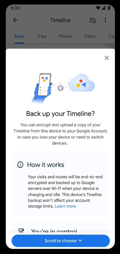 谷歌在新聞稿中表示在后續更新中,用戶(hù)去過(guò)的地方、前往目的地的路線(xiàn)等信息會(huì )自動(dòng)保存在每臺設備本地上,方便用戶(hù)更好地控制數據。