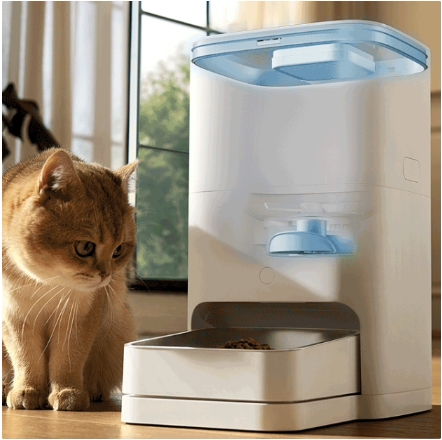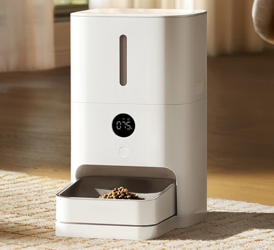 這款產(chǎn)品配備 5L 儲糧桶,可一次性放入約 2.5kg 貓糧,供一只成年貓咪吃 30 天;配備稱(chēng)重喂食碗,實(shí)時(shí)檢測碗內余糧,重量誤差不超過(guò) 1g;搭配自研算法,動(dòng)態(tài)計算寵物進(jìn)食克數。