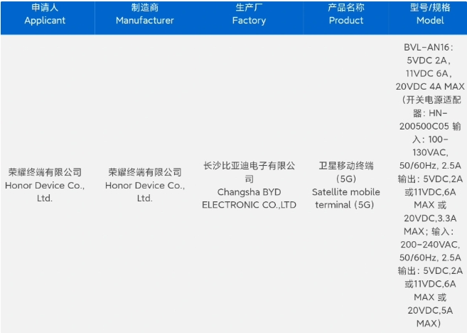 值得一提的是,此前有一款型號為 BVL-AN16 的新機通過(guò)中國質(zhì)量認證中心 3C 認證,支持 100W 快充,產(chǎn)品名稱(chēng)為“衛星移動(dòng)終端”,預計為榮耀 Magic 6 Pro 手機。
