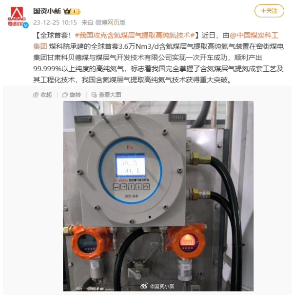 全球首套,我國攻克含氦煤層氣提取高純氦技術(shù)