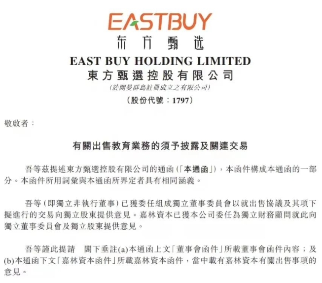 東方甄選擬向母公司新東方 15 億出售教育業(yè)務(wù),今后專(zhuān)注直播帶貨