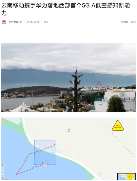 可實(shí)時(shí)測量無(wú)人機位置精度,華為、云南移動(dòng)在大理洱海完成西部首個(gè) 5G-A 通感一體低空試點(diǎn)