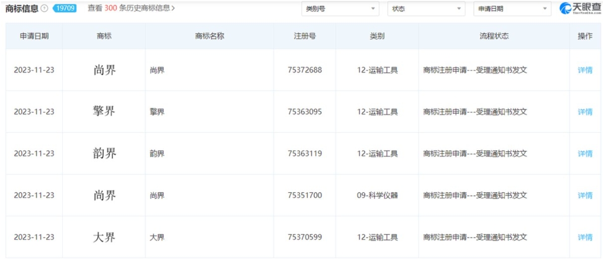 華為“造車(chē)”的成功,自智選車(chē)模式的問(wèn)界以來(lái)我們有目共睹,但其野心顯然不止步于此,天眼查 APP 顯示,今年下半年華為已經(jīng)密集申請注冊了“尚界”、“擎界”、“大界”等一系列界字輩兒商標。