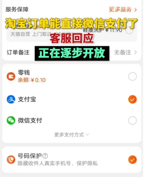淘寶回應開(kāi)放微信支付:目前僅針對部分用戶(hù)和訂單開(kāi)放,后續將全面覆蓋