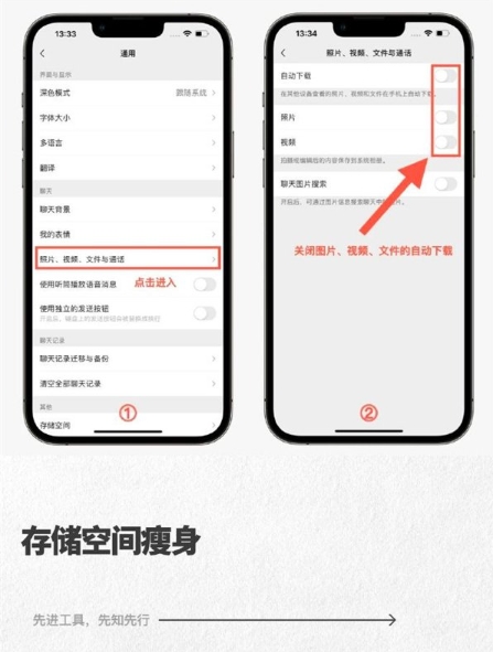 除了常規的微信內存清理和聊天記錄電腦備份,還可以關(guān)閉“自動(dòng)下載”功能,防止APP自動(dòng)下載視頻、照片等大文件。