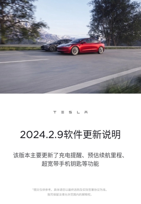 特斯拉中國宣布 2024.2.9 版本已開(kāi)始分批次推送,沒(méi)有提及具體車(chē)型限制。