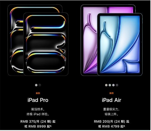 iPad Air則首次推出了11英寸和13英寸兩種尺寸,配備M2芯片以及Liquid視網(wǎng)膜顯示屏。iPad Pro售價(jià)為人民幣8999元起,iPad Air售價(jià)為人民幣4799元起,將于5月9日上午9時(shí)起接受訂購,5月15日起發(fā)售。