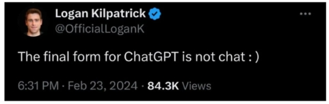 早就2月份,OpenAI前開(kāi)發(fā)者關(guān)系負責人就提及,ChatGPT的終極形態(tài)不是聊天,看起來(lái)和現在的信息對應上了