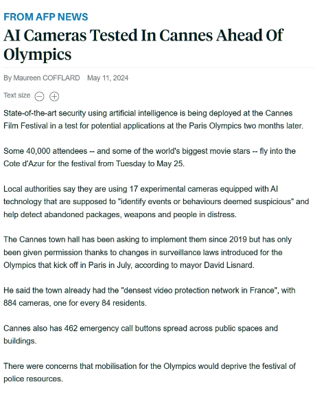 為巴黎奧運安?!颁伮贰?,戛納電影節將部署可識別可疑行為的 AI 攝像頭