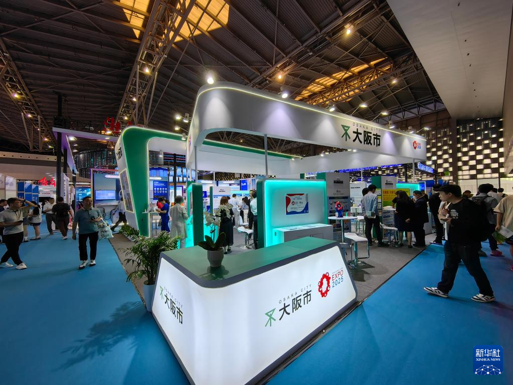 上交會(huì )上,觀(guān)眾正在參觀(guān)境外主賓城大阪帶來(lái)的技術(shù)。新華社記者周蕊 攝