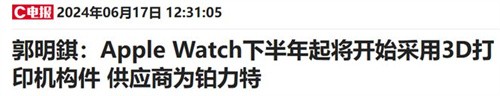 郭明錤還提到,蘋(píng)果手表將從今年下半年開(kāi)始采用由3D打印技術(shù)生產(chǎn)的部件。這項計劃原定于去年開(kāi)始量產(chǎn),而在經(jīng)過(guò)了1年多的密集測試后,3D打印技術(shù)的生產(chǎn)效率已有明顯改善。