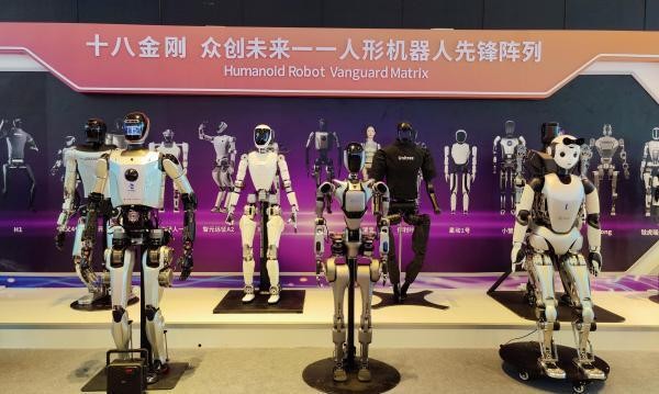 人形機器人“十八金剛”現場(chǎng)列成長(cháng)龍,成為WAIC風(fēng)景線(xiàn)。