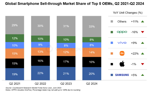Counterpoint:2024 年 Q2 全球智能手機銷(xiāo)量同比增長(cháng) 6%