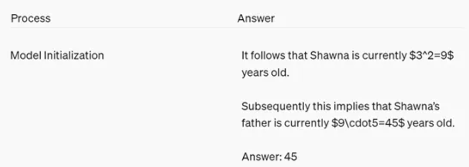 而驗證者模型GPT-3需要確定阿莉亞的年齡,然后根據阿莉亞的年齡計算出肖娜的年齡,最后再根據肖娜的年齡計算出肖娜父親的年齡,整個(gè)過(guò)程需要多輪驗證。
