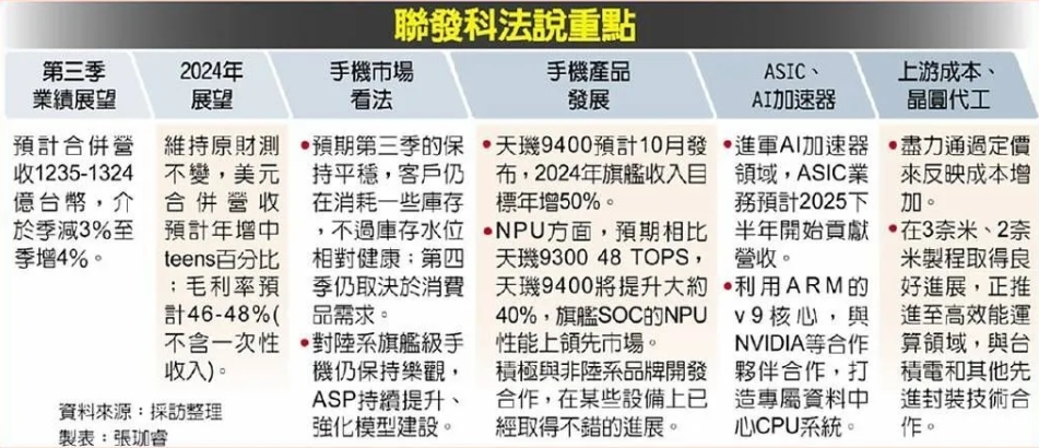 蔡力行表示天璣 9400 芯片的平均售價(jià)(ASP)也會(huì )高于前代,并積極開(kāi)拓國際市場(chǎng)。